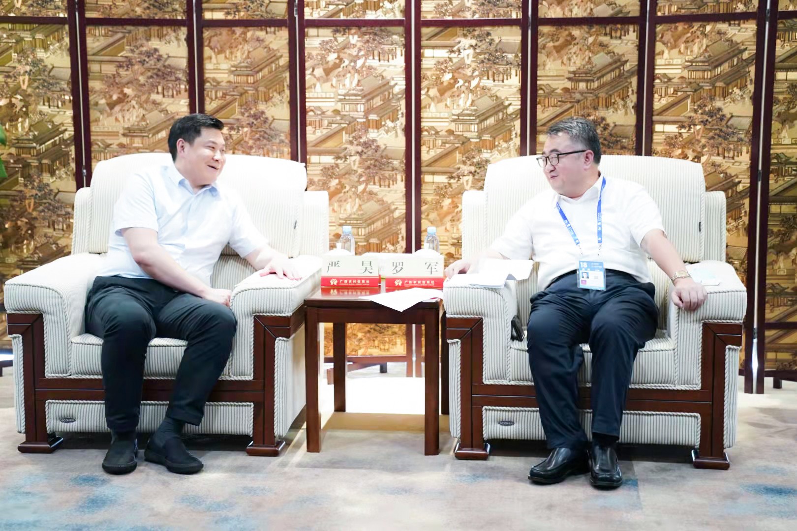 9月11日,嚴(yán)昊主席與廣西農(nóng)村信用社聯(lián)合社黨委書記、理事長羅軍會談,雙方就進(jìn)一步加強(qiáng)銀企合作進(jìn)行深入交流。