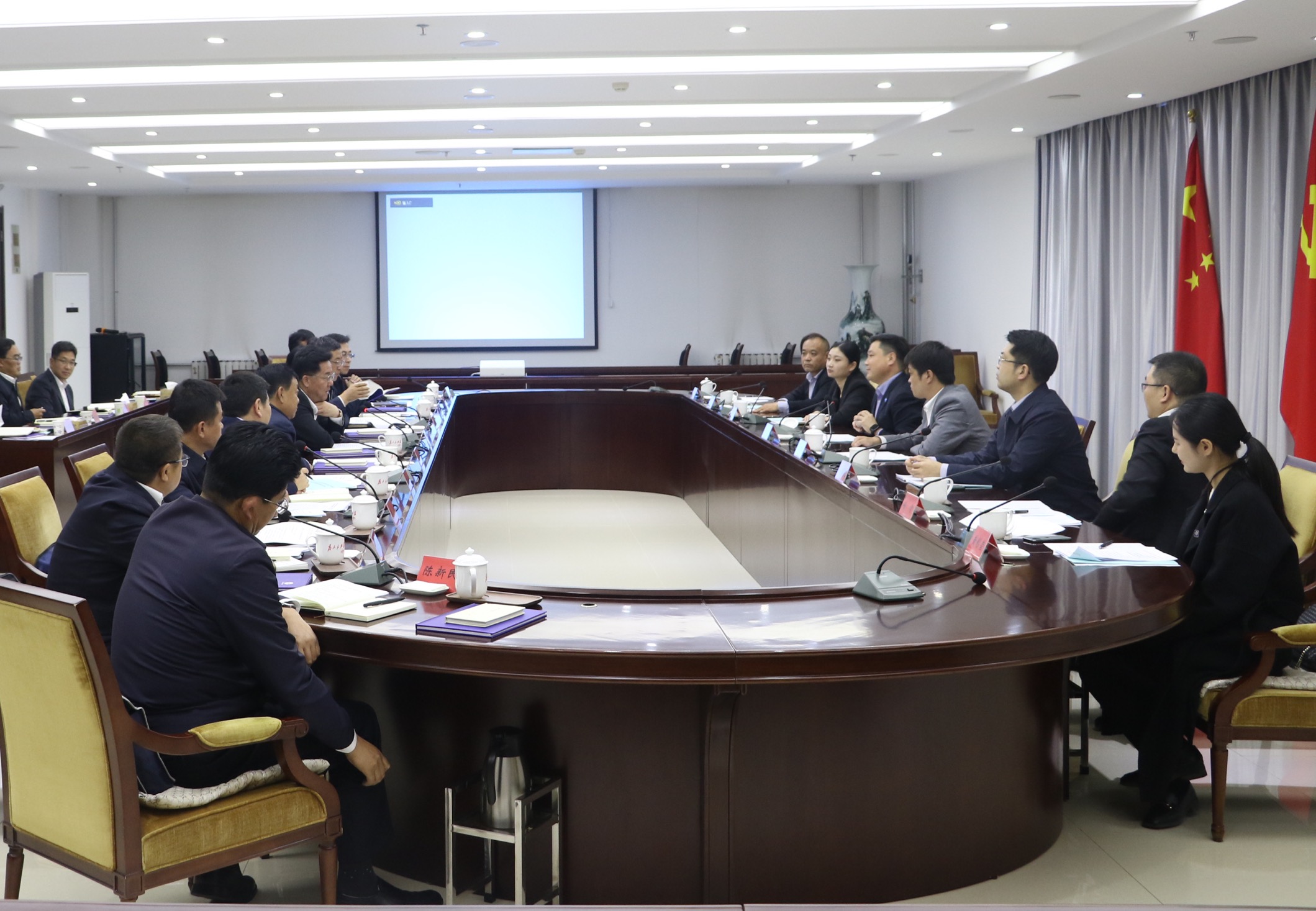 10月13日,嚴昊主席與甘肅省定西市委書記戴超會談,雙方就定西市基礎設施建設及后續(xù)合作事宜進行深入交流。定西市委副書記、市長汪尚學,市委常委、常務副市長高永平出席會談。
