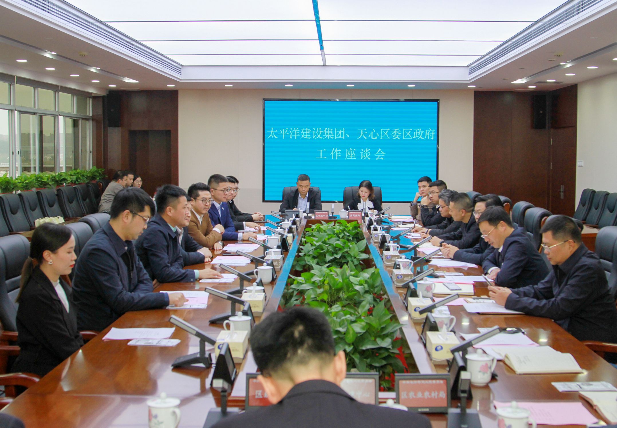 太平洋建設(shè)總裁宋少庭,太平洋建設(shè)大區(qū)總裁、太平洋水務(wù)董事局主席常偉偉,太平洋水務(wù)總裁、太平洋水務(wù)二集團(tuán)董事局主席沙波,太平洋建設(shè)經(jīng)營(yíng)中心總經(jīng)理劉非凡,太平洋水務(wù)經(jīng)營(yíng)中心總經(jīng)理雷守寧,太平洋水務(wù)區(qū)域經(jīng)理王桃玉;天心區(qū)委副書(shū)記、代區(qū)長(zhǎng)周志軍,區(qū)委常委、區(qū)政府黨組副書(shū)記、常務(wù)副區(qū)長(zhǎng)提名候選人厲波,區(qū)委常委、區(qū)委辦主任許波,區(qū)委常委、區(qū)政府副區(qū)長(zhǎng)提名候選人張浩平,區(qū)政府副區(qū)長(zhǎng)提名候選人劉正文及區(qū)委辦、區(qū)政府辦、區(qū)發(fā)改局、區(qū)住建局等領(lǐng)導(dǎo)共同參加會(huì)談。(文/圖 太平洋水務(wù)文品中心 太平洋建設(shè)文品中心)