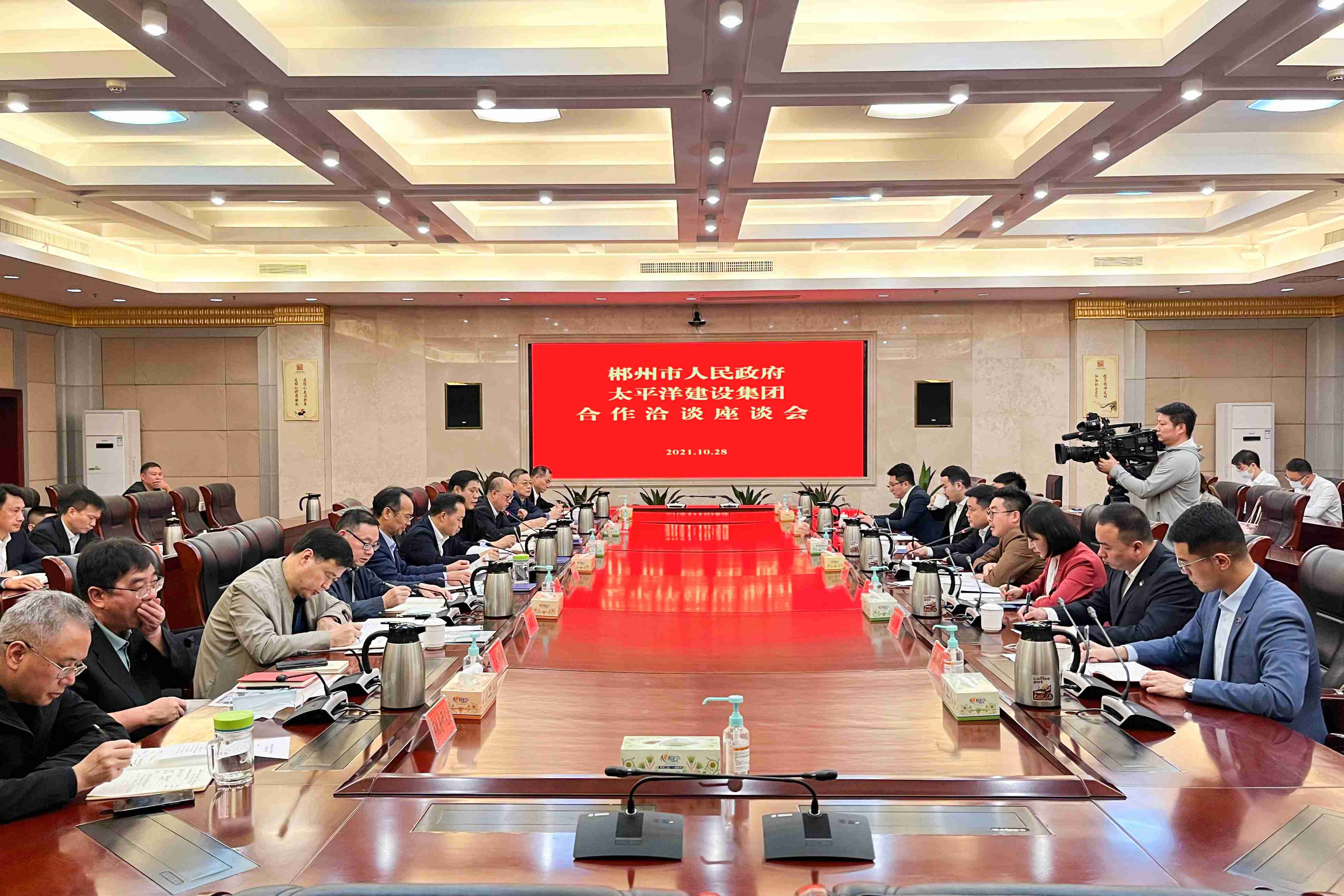 太平洋建設(shè)董事局副主席、總裁宋少庭,太平洋建設(shè)大區(qū)總裁、太平洋水務(wù)董事局主席常偉偉,太平洋建設(shè)副總裁、十三集團董事局主席張敏,太平洋建設(shè)二十三集團董事局主席劉泰然,二十三集團管理副總裁季巍、高級副總裁兼經(jīng)營中心總經(jīng)理趙浩淼、區(qū)域副總裁韓楨成;市政府黨組成員李浩,市政府秘書長周亦彬,市政府副秘書長郭應(yīng)湘,市政府辦公室三級調(diào)研員譚國政,市發(fā)改委、市住建局、市交通運輸局、市水利局、市商務(wù)局、市政府研究室、郴投集團相關(guān)負責(zé)人,北湖區(qū)委副書記、區(qū)長候選人蔣慧亮,蘇仙區(qū)委常委、常務(wù)副區(qū)長李定河參加會談。(文/圖 太平洋建設(shè)文品中心 太平洋建設(shè)二十三集團)