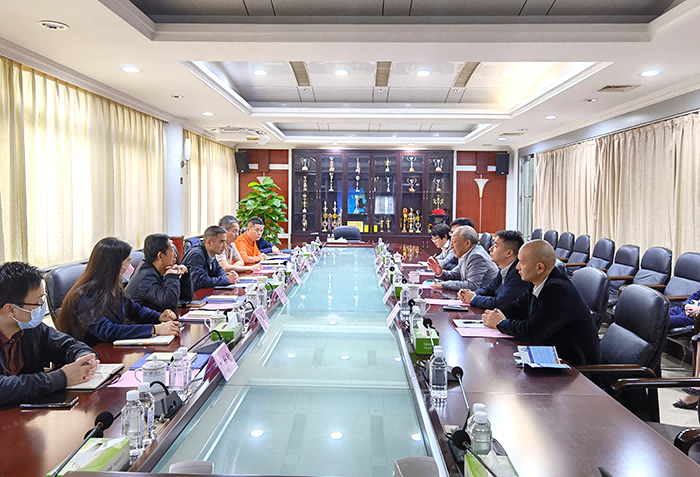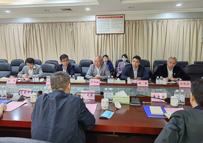 莊嚴水務經營中心總經理方允江、工程中心總經理殷訊;東莞市住房和城鄉(xiāng)建設局副局長崔崗平等參與會談(文/圖 莊嚴水務文品中心)