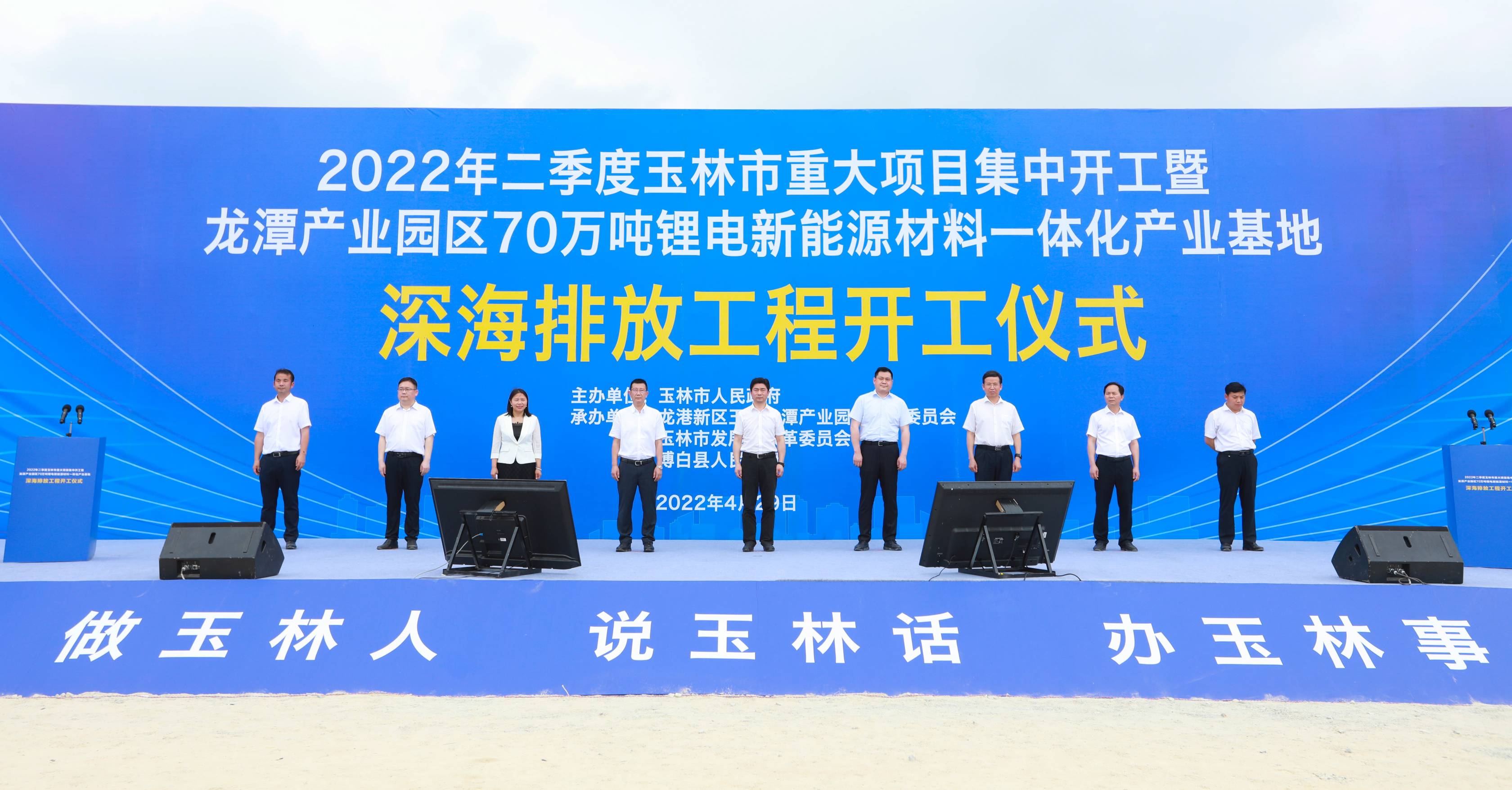 4月29日上午,2022年二季度廣西玉林市重大項目集中開工暨龍?zhí)懂a(chǎn)業(yè)園區(qū)70萬噸鋰電新能源材料一體化產(chǎn)業(yè)基地深海排放工程開工儀式在廣西玉林博白縣隆重舉行。