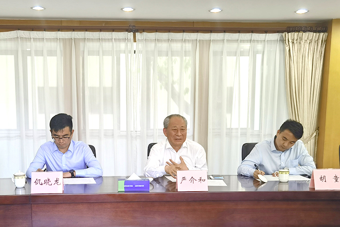 5月6日上午,嚴(yán)介和理事長(zhǎng)在廣東省東莞市同東莞市國(guó)資委黨委書(shū)記、主任周偉森舉行會(huì)談,雙方就深化合作、共建未來(lái)進(jìn)行友好交流。