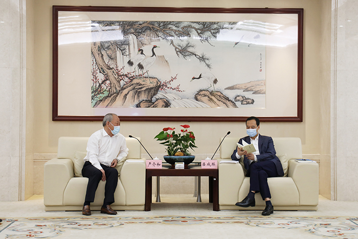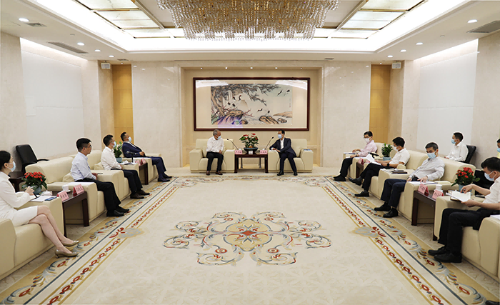5月10日上午,嚴(yán)介和理事長應(yīng)邀同廣東省東莞市委副書記、市長呂成蹊在莞會(huì)談。雙方就東莞城市基礎(chǔ)設(shè)施投資、建設(shè)、運(yùn)營與管理展開交流。莊嚴(yán)文旅董事局主席陳志成、滬商建設(shè)董事局主席仉曉龍參加會(huì)談。