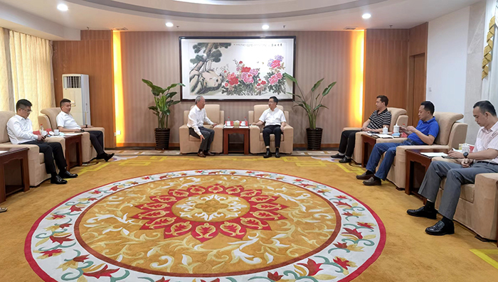 5月11日上午,嚴(yán)介和理事長(zhǎng)應(yīng)邀在廣東東莞同東莞市城建局黨組書(shū)記、局長(zhǎng)朱默河會(huì)談,雙方就推進(jìn)政企合作、共建東莞基建進(jìn)行交流。運(yùn)河建工董事局主席胡童、滬商建設(shè)董事局主席仉曉龍陪同。